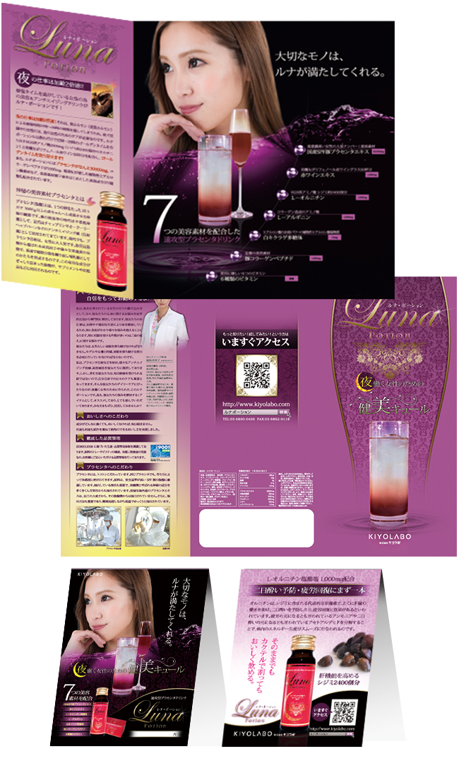 「潤い」をテーマに夜のお仕事をされている女性をターゲットとしてデザインしました。一見して満たされるイメージが伝わる紙面を目指しました。